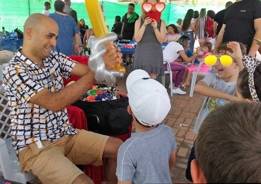 התמונה הזו צולמה באירוע בו עשיתי בלונים לאחרונה, ואתם רואים בה את הרגע שבו אני נותן את הבלון שעשיתי לילד שחיכה לו.