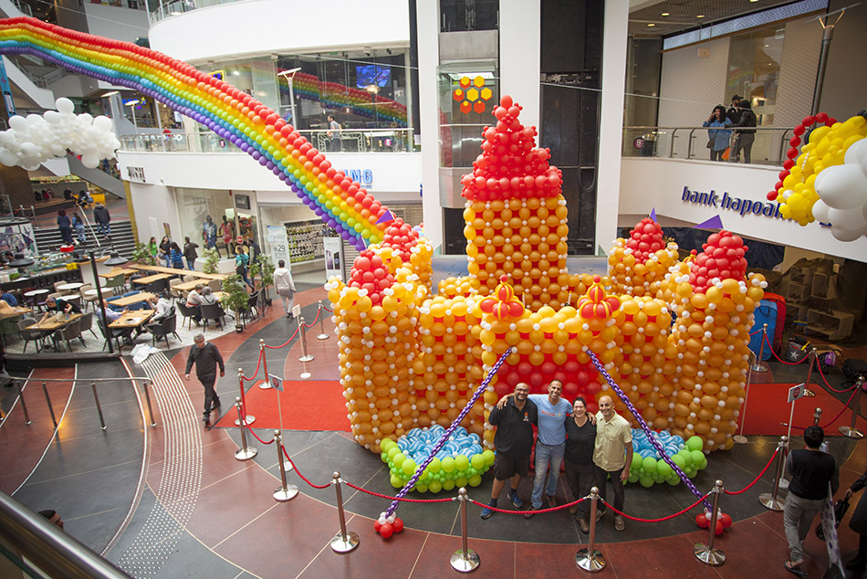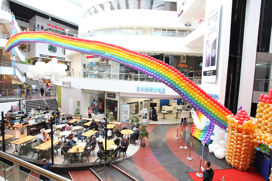 קשת בענן מבלונים באורך 40 מטרים שעיטרה את דיזנגוף סנטר