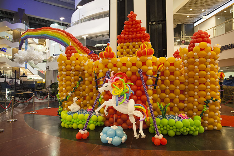 טירת הבלונים שהיתה המרכז של המיצב. את הטירה עיצבה שרית נייד (שרית גם יצרה את חד הקרן שבחזית הטירה).