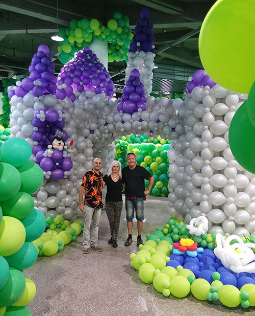 אנשים מבקרים בטירת הבלונים