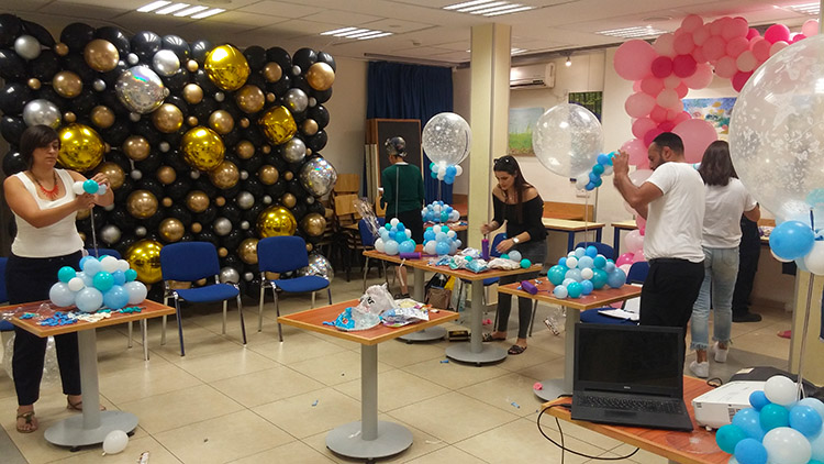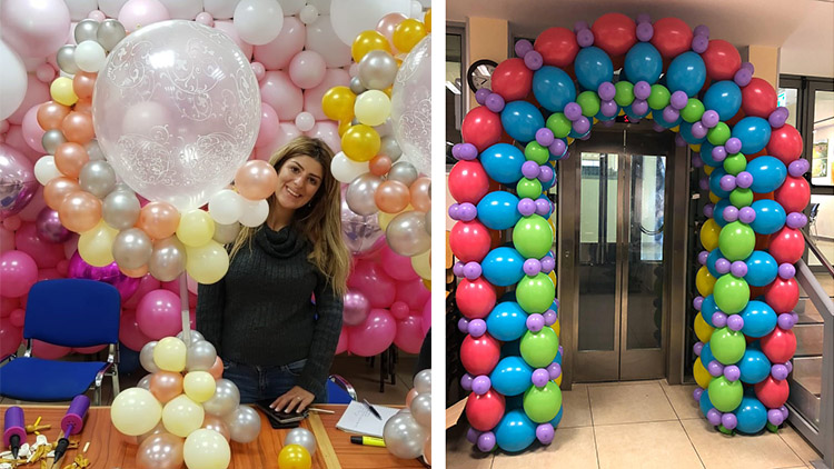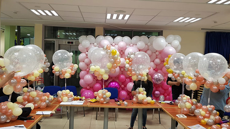 - עיטוף עמודים בעזרת בלונים – בשיעור זה נלמד טכניקה חדשנית המאפשרת לעטוף עמודי בניין גדולים בקלות ובמהירות, כחלק מעיצוב בלונים שיכול להתאים גם ללובי של חברה גדולה.