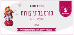 שובר הנחה בסך 200 ש"ח להשתתפות בקורס הפרונטלי: "קיפול בלונים לצורות, חיות וכובעים" (השובר נמצא בתוך דף הקורס).
