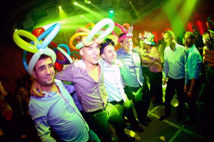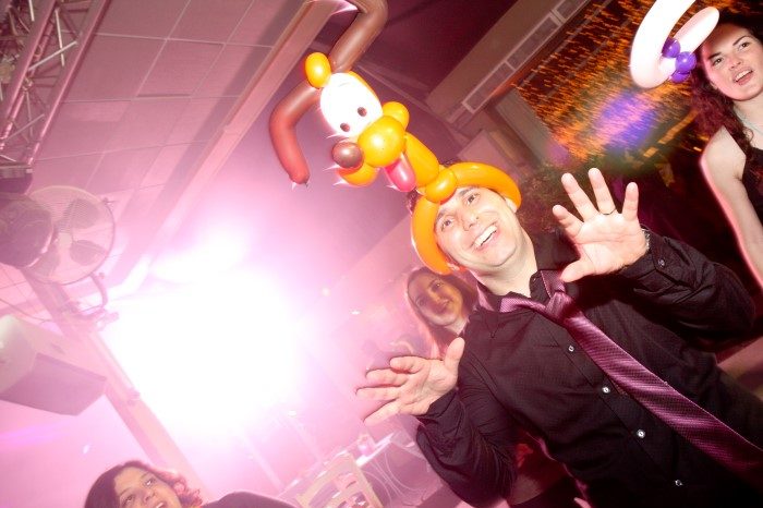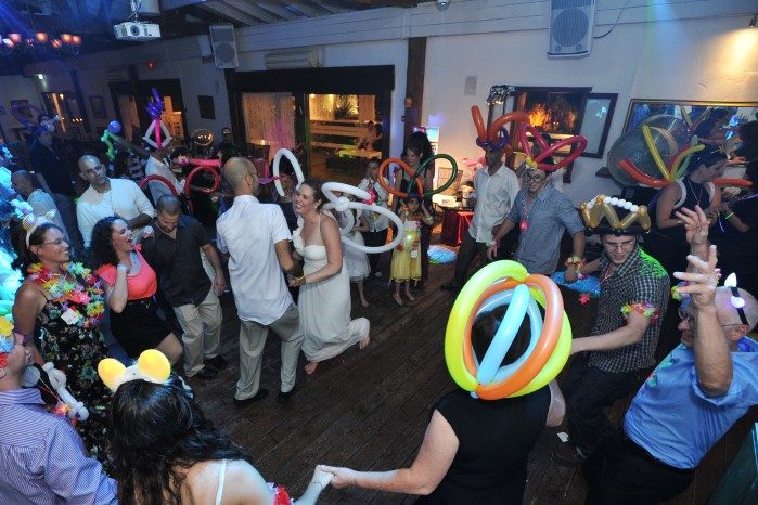 איך אני עושה את זה? בעזרת פריטי בלונים שאני מכין מראש (ומפזר אותם ברחבת הריקודים בחלק המרכזי של הריקודים) וגם על ידי יצירה של בלונים תוך כדי האירוע מתוך עמדת האמן שלי. בחלק הזה של הערב אני יוצר בעיקר צמידים מדליקים מבלונים ועוד פריטי בלונים מיוחדים עבור מי שרוקד ועושה שמח בחתונה שלכם (: