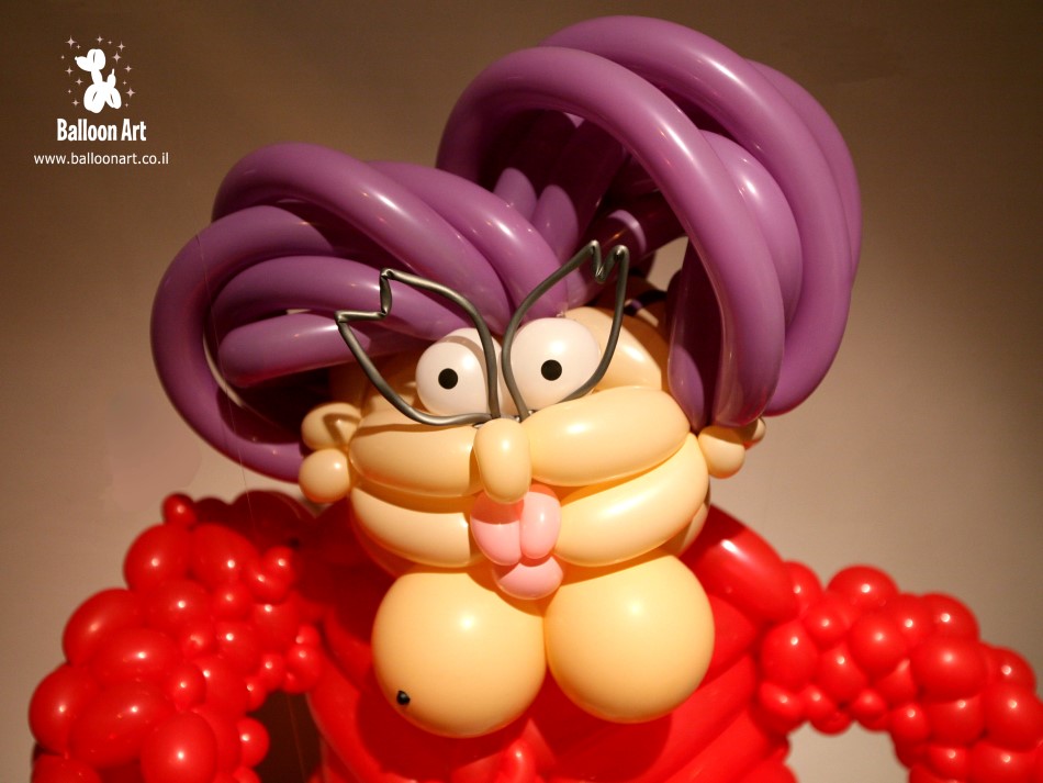 פסל בלונים בדמות זקנה מבלונים מהתערוכה של ברק דגן