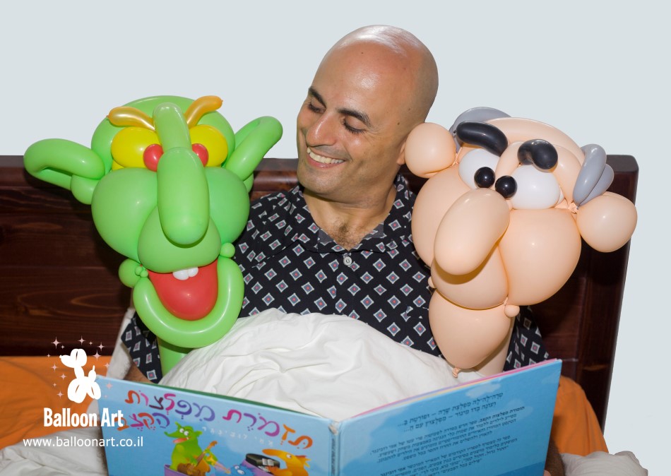 שני פסלי בלונים בדמות מפלצות שהכנתי כהכנה לשיעור פרצופים מבלונים שהועבר באחד מכנסי הבלונים הגדולים בעולם בו הדרכתי (בארצות הברית)