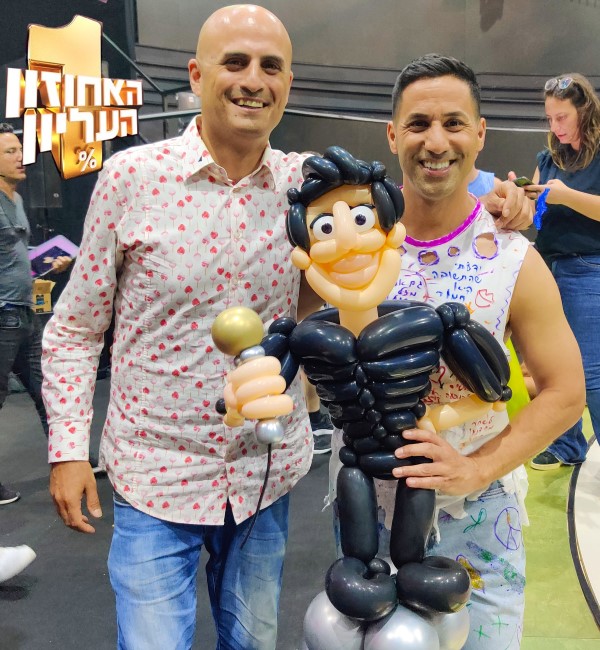 צפו בקטע שבו אני מעניק לשחר חסון בלון בדמותו, בשעשועון "האחוזון העליון"