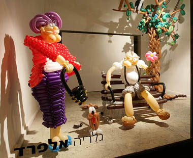בנובמבר 2008 יצרתי את המיצב "בלון ניסוי" שהיה עשוי כולו ממאות בלונים בגדלים, צורות, וצבעים שונים. המיצב תיאר סצנה אורבנית יום יומית והוא הוצג בגלריה אלפרד בתל אביב. היתה זו התערוכה הראשונה שהציגה פיסול בבלונים בגלריה לאמנות עכשווית בארץ.